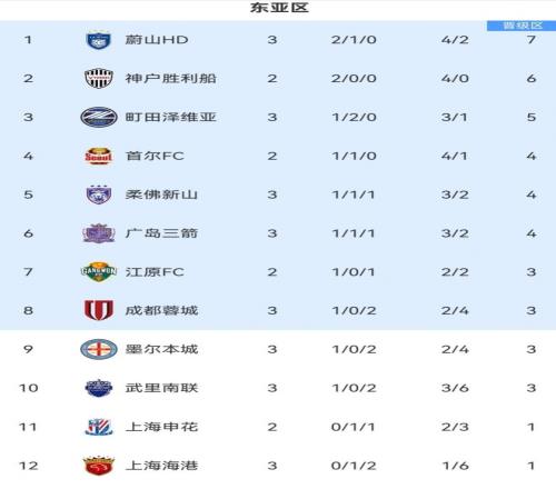 随着成都02!海港02,难求一胜!亚冠最新积分榜:中超冠军垫底