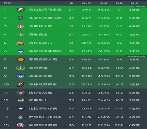 西部最新积分榜