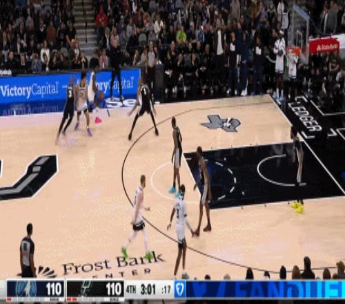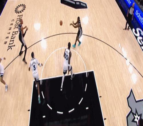 迎着老狐狸的防守,45度角的甩狙3分命中,追到2分直接打停马刺。